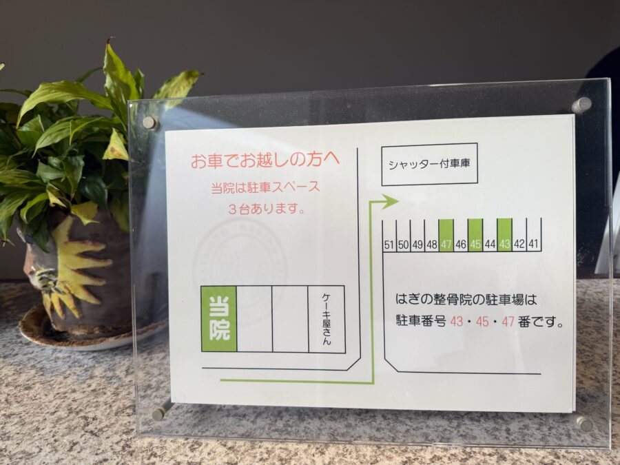 はぎの整骨院の駐車スペースは全部で3台ございます。
